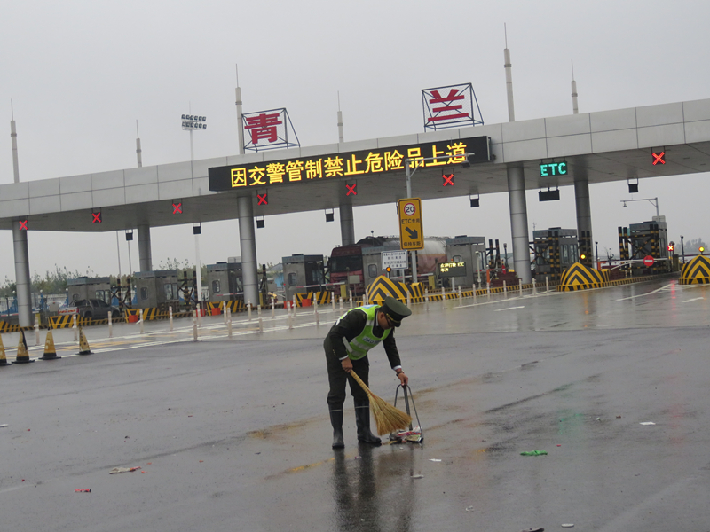 109日上午,陰雨連綿,氣溫頗低。由于之前交通管制,許多大車在收費(fèi)廣場(chǎng)滯留,待車輛駛離后,留下許多生活垃圾,使廣場(chǎng)變得異常臟亂。面對(duì)這一情況,青蘭站D班班長(zhǎng)尚澤立即帶領(lǐng)班組成員冒雨對(duì)廣場(chǎng)進(jìn)行清掃,使廣場(chǎng)恢復(fù)整潔。