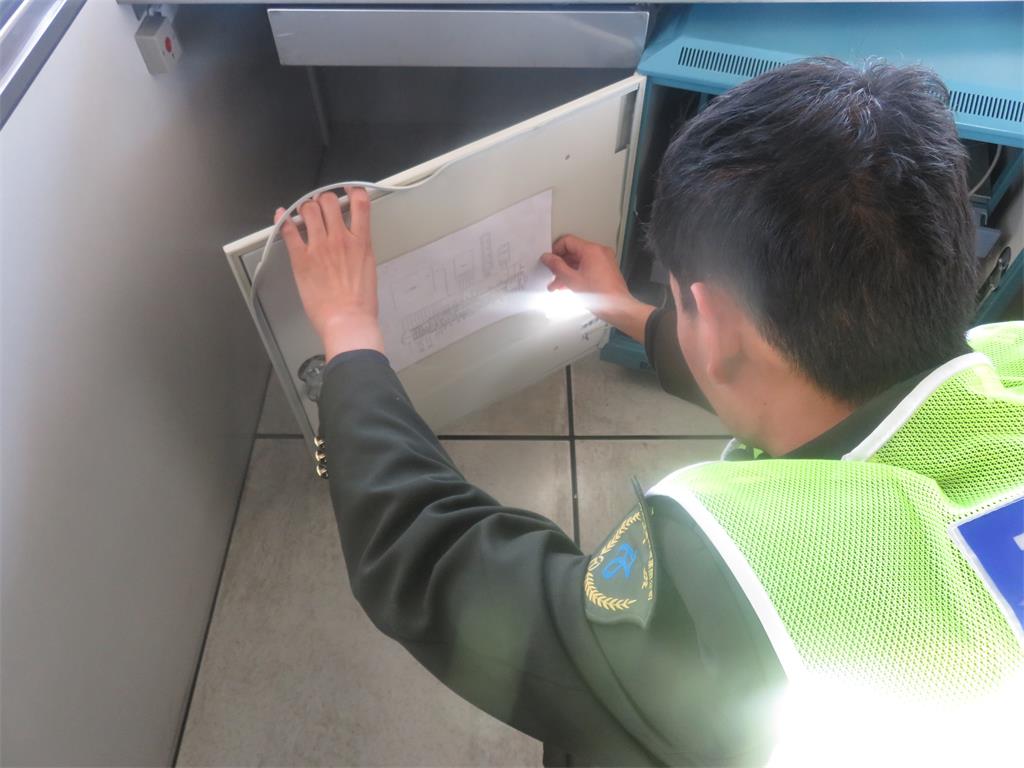 班組成員分為兩組,一組負責檢查崗?fù)?nèi)的設(shè)備,另外一組檢查自動欄桿機和外部視頻監(jiān)控器。在檢查的過程中,發(fā)現(xiàn)工控機內(nèi)的線路示意圖發(fā)生脫落,班長拿來雙面膠和剪刀,大家拿著示意圖仔細核對每個按鈕的位置和作用,確保無任何差錯后再將示意圖貼上,在粘貼的過程中每個成員再次對設(shè)備的功能進行了溫習。經(jīng)過兩個小時的認真排查,在全體班組成員相互配合下妥善完成了機電設(shè)備檢查工作。