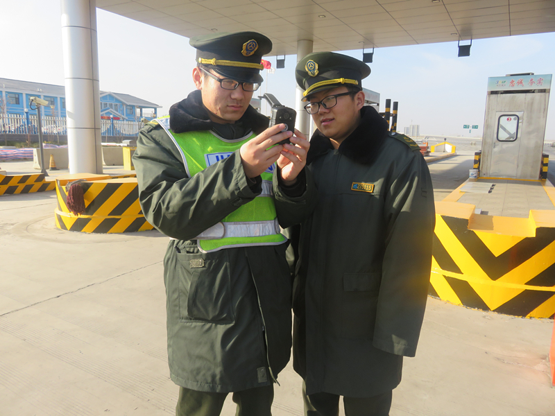 2017年12月28日,青蘭收費(fèi)站A班組織班組成員學(xué)習(xí)新配發(fā)的執(zhí)法記錄儀。