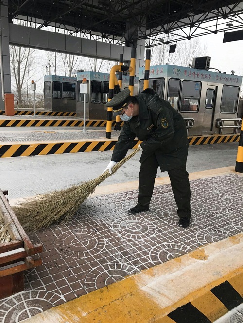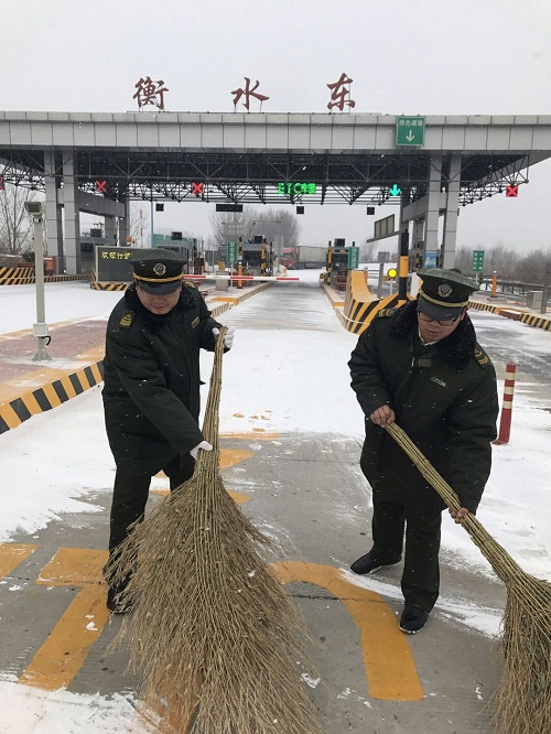 站長鄭驥飛、副站長張世佳身先士卒,不畏嚴寒和職工一起清理積雪。大家有人掃雪,有人鏟雪,有人負責用推車運送積雪,一切高效且有條不紊地進行著。經(jīng)過兩個多小時的努力,收費廣場及車道已被清理干凈。本次除雪保暢不僅保障了司乘行車順暢及安全,同時也檢驗了19日除雪保暢的演練效果。事實表明,衡水東站職工能夠高效、有序地進行除雪保暢,為司乘提供優(yōu)質(zhì)的服務(wù)。