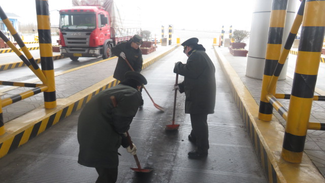 大家分工明確,有的拿鐵锨將附著在地面上的油泥刮下來,有的拿來掃把和簸箕,把鏟下來的污泥掃干凈。由于油泥附著力強,很難刮下來,大家很仔細的一塊塊的清理。大家在干的同時也著重注意到線圈設備,在不損壞機電設備的同時努力把車道清理干凈。