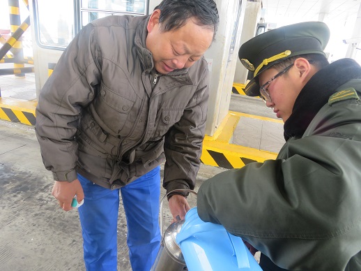 車牌皖A5601的危險(xiǎn)品貨車就是其中一輛,由于危險(xiǎn)品晚七點(diǎn)以后便不允許上道,司機(jī)陳師傅已經(jīng)在此等候超過24小時(shí),想著此時(shí)的天氣狀況,收費(fèi)站A班班長平國慶便主動向前詢問,得知陳師傅此行前去浙江臺州,路途遙遠(yuǎn),自備的水已因滯留所剩無幾,了解情況后迅速帶領(lǐng)其到便民服務(wù)臺取熱水。
