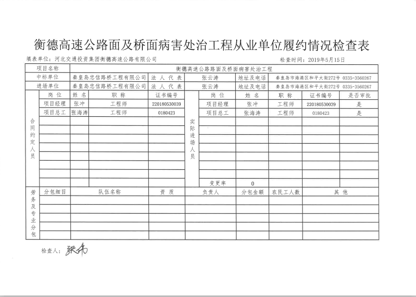 衡德高速公路路面及橋面病害處置工程施工單位履約