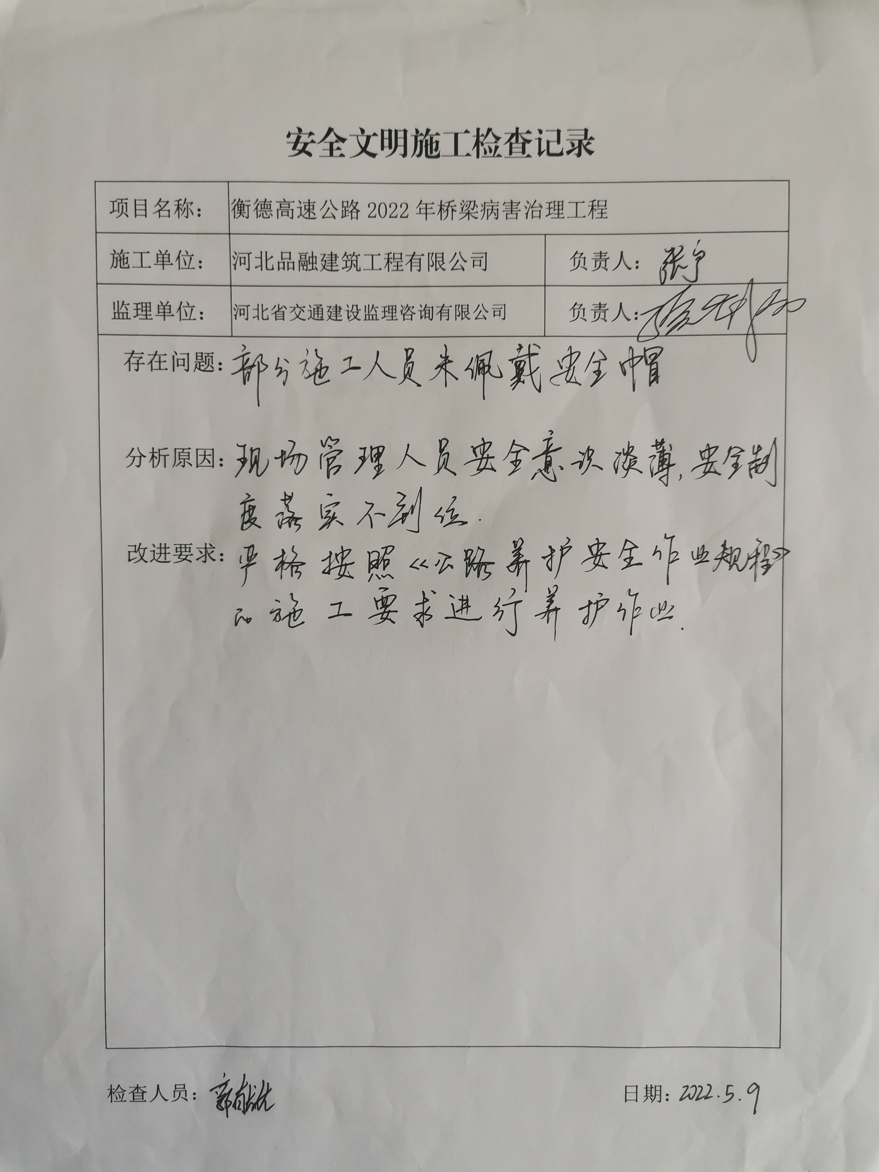 衡德高速公路2022年橋梁病害治理工程安全檢查