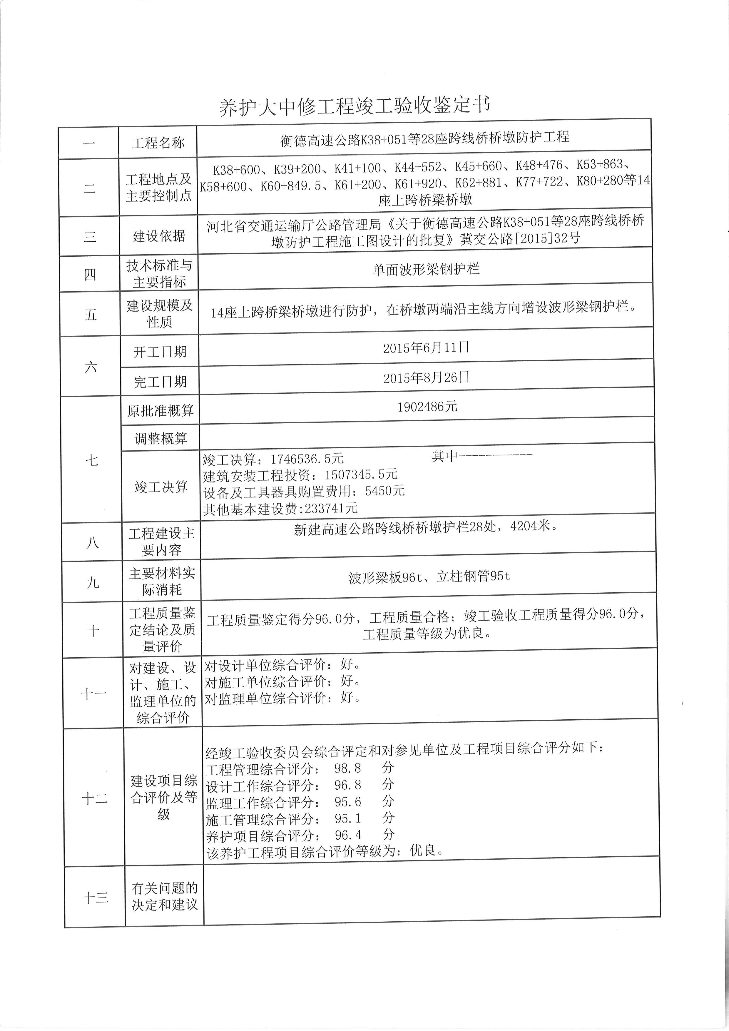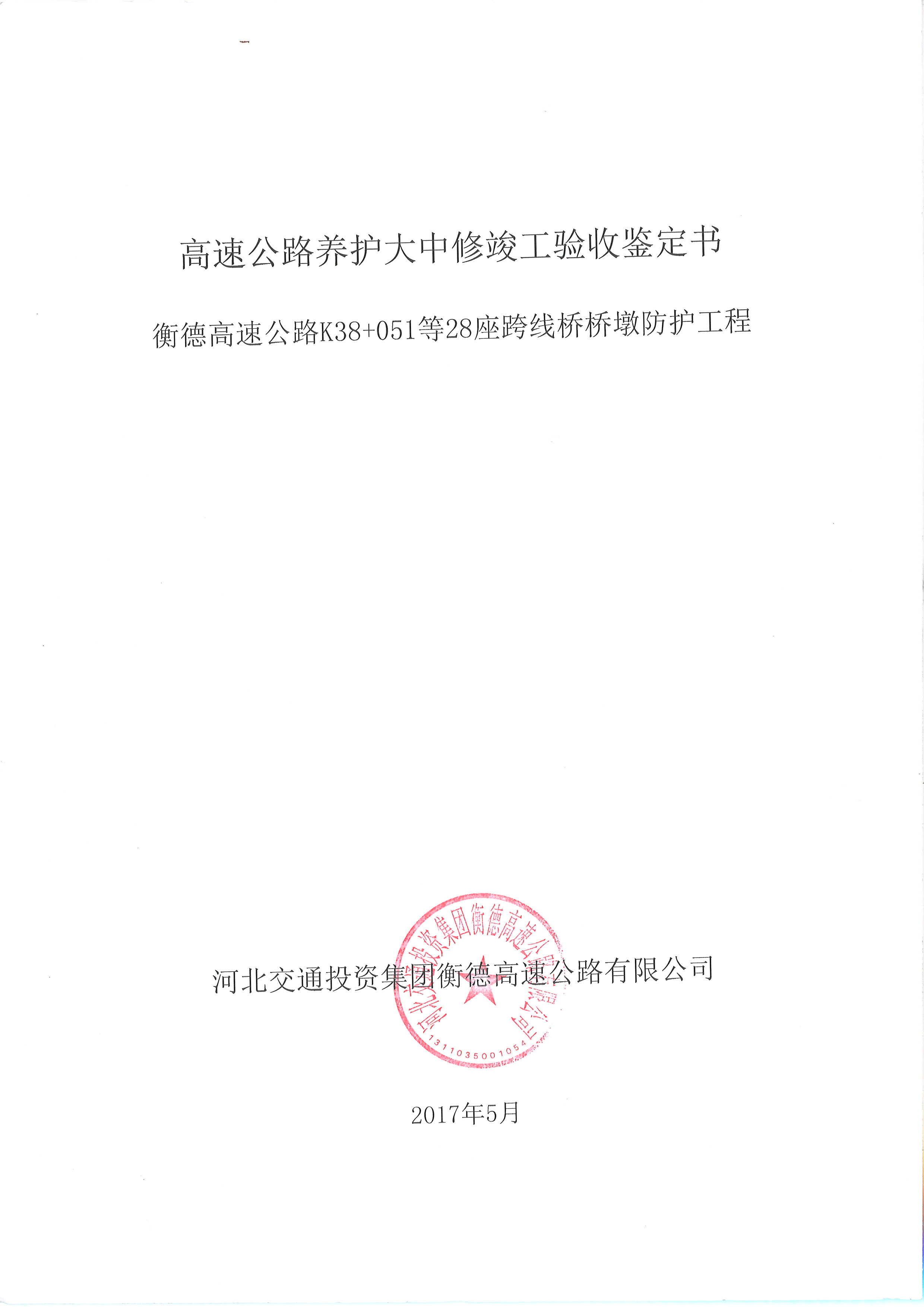 k38+051等28座跨線橋橋墩防護(hù)工程竣工驗收鑒定書