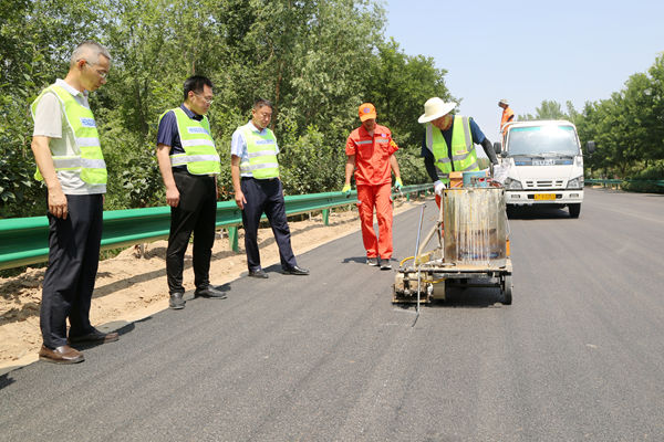 隨后,鄭志平一行來到衡德公司創(chuàng)新創(chuàng)效標(biāo)線施工現(xiàn)場機(jī)場連接線故城段,慰問青蘭養(yǎng)護(hù)工區(qū)作業(yè)人員,檢查指導(dǎo)安全生產(chǎn)。鄭志平要求,一是完善施工安全設(shè)施,現(xiàn)場安全人員加強(qiáng)管理,確保道路行車安全。二是規(guī)范施工作業(yè),防止?fàn)C傷、燒傷,確保作業(yè)人員安全。三是合理安排施工時(shí)間,準(zhǔn)備必要的防暑降溫物品,防止人員中暑。
