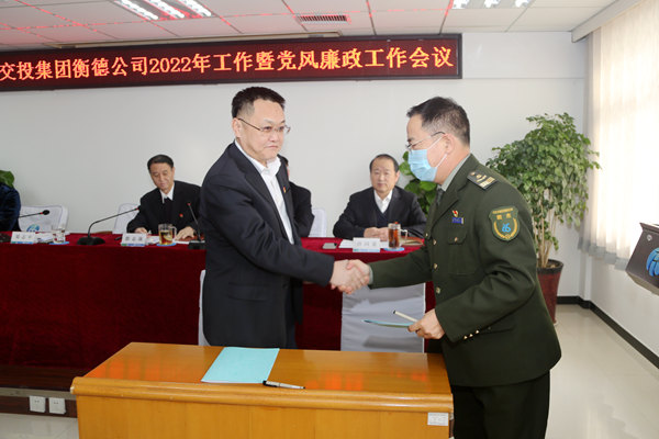 1月28日,衡德公司召開2022年工作暨黨風廉政建設工作會議。公司領導鄭志平、郭志戰、高菁、許坤、高世茂、孫同策出席會議,黨委委員、副總經理高菁主持會議。