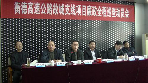 首先,廉政巡查組組長張樹山介紹了本次巡查的主要任務和工作安排。然后,衡德分公司總經理、故城支線籌建處處長孫國忠與河北路橋集團公司總經理郝克儉,分別就故城支線項目黨風廉政建設和反腐敗工作開展情況,作了專題匯報。最后,集團公司紀檢書記李海衛做重要講話。