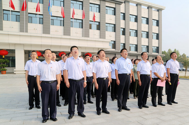 金秋送爽,丹桂飄香。為熱烈慶祝新中國成立68周年,喜迎黨的十九大勝利召開,充分激發干部職工愛國報國情懷,2017年10月1日,衡德公司隆重舉行了“升國旗、唱國歌”儀式,儀式由工會常務副主席高世茂主持,黨委書記、總經理孫國忠出席并講話。公司班子成員、機關全體、指揮調度中心非當班人員60余人參加了儀式。