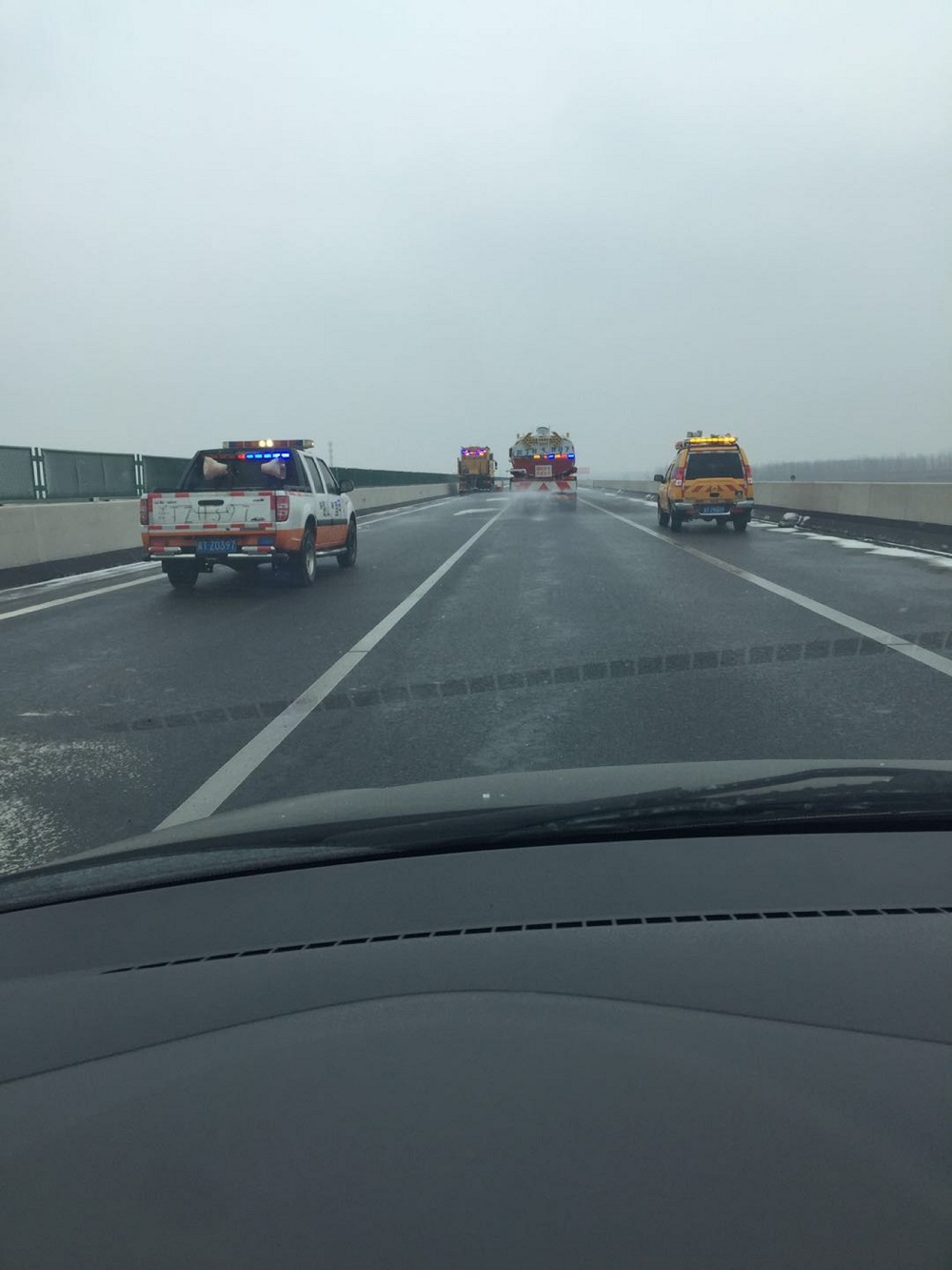 除雪隊伍連續奮戰,1月22日下午,為防止路面結冰,對橋梁、超高段等易結冰路段進行人工清理。23日凌晨對K55+000等個別路段撒布融雪劑,確保道路無結冰。