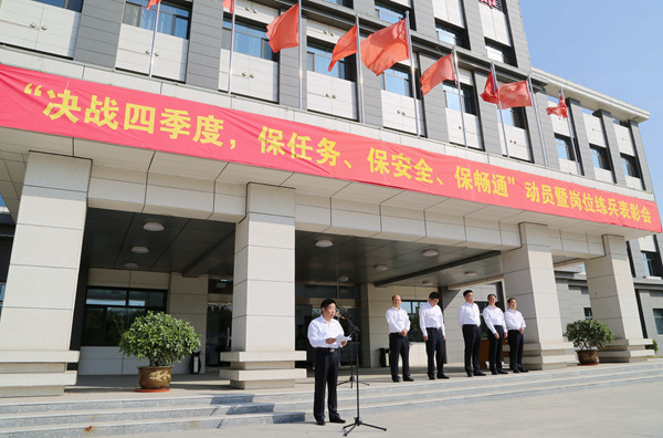 為傳導(dǎo)壓力,鼓足干勁,全面貫徹集團(tuán)公司誓師動員會精神。10月9日,衡德公司召開了“決戰(zhàn)四季度、保任務(wù)、保安全、保暢通”動員暨崗位練兵表彰會。會議由黨委委員、副總經(jīng)理陳亮主持,黨委書記、總經(jīng)理孫國忠做了動員講話。
