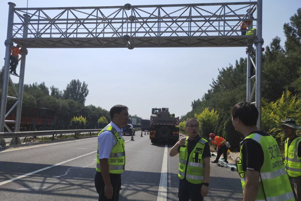督導組首先到達衡德高速取消省界收費站ETC門架吊裝現場,對門架的吊裝過程和安全防護工作進行了檢查。同時詳細了解了衡德公司取消高速公路省界收費站各專項工程的工作進展情況和下一步工作計劃安排。督導組提出取消省界站工作作為一項年度重點工程,時間緊、任務重,安全問題更應擺在突出位置予以重視,要加強緊迫感,保證按期保質圓滿完成建設任務。