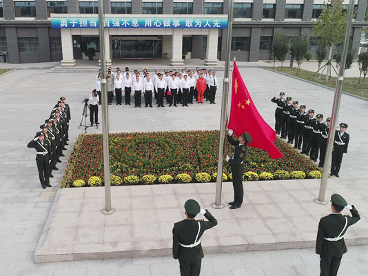 清晨8時許,公司機關廣場上響起莊嚴的國歌聲,精神抖擻的升旗手將鮮艷的五星紅旗冉冉升起,在場人員對著國旗行注目禮,唱國歌,表達最崇高的敬意。