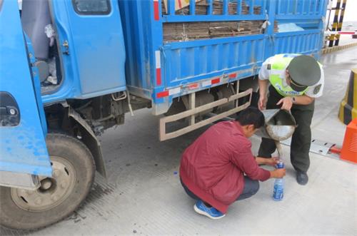 得知這一情況后,王興當(dāng)即用對講機(jī)將這一情況通知了值班站長,在征得同意后,后勤楊圣賢隨即開車為該司機(jī)購買了柴油。頂著烈日,王興、楊圣賢先配合司機(jī)將配氣管內(nèi)的余氣排凈,然后為貨車加上購買的柴油,幫助司機(jī)解決了無法啟動駛離車道的困境。司機(jī)表達(dá)了誠摯的謝意,王興、楊圣賢微笑著說:能幫助您,是我們的榮幸。