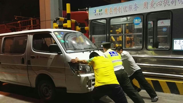 9月30日,正值國慶節(jié)客流高峰期,晚19時(shí)40分左右,一輛車牌照為冀T的白色面包車在接到卡后,突然停在了車道內(nèi),并從車底冒出了滾滾白煙,車輛發(fā)生了自燃。疏導(dǎo)員劉兵發(fā)現(xiàn)后立即通知了當(dāng)班班長申曉萌,申班長迅速拿出崗?fù)?nèi)備用的滅火器組織滅火。經(jīng)過大家的共同努力,終于將車底的明火撲滅,并一同將車推出收費(fèi)站外,等待維修師傅做進(jìn)一步維修。