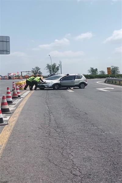 5月5日,一輛小型轎車在廟鎮收費站出口突然發生故障,車輛無法正常啟動,滯留在道路中間。當時正值出行高峰,后方車輛紛紛減速避讓,不僅嚴重影響了其他車輛的正常通行,還存在極大的安全隱患。