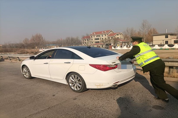 發現該情況后,王鋒立即啟動現場應急處置流程,一方面對后方來車進行疏導引導,示意車輛減速避讓,維護現場通行秩序;另一方面迅速上前與車主溝通核實情況,確認車輛因發動機故障導致無法啟動,車主暫無法自行解決困境。
