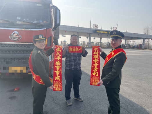 “您好,這是送給您的春聯和福字,祝您一路順風,闔家團圓!”工作人員面帶微笑,將一幅幅寫滿祝福的春聯、一張張紅彤彤的福字,連同暖心的新春問候一同送到司乘手中。針對春運期間車流大、司乘易疲勞的特點,收費站還專門設立便民服務點,備齊熱水、急救箱、交通地圖、車輛應急工具等物資,同時安排專人提供路況咨詢、路線指引等服務,全力解決司乘出行難題。