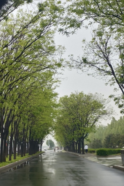 柏油路上春雨行
