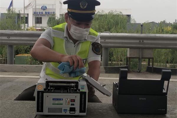 廟鎮收費站定期對票據打印機、驗鈔機進行仔細清理。