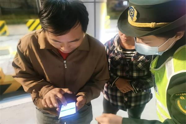 10月16日22:00左右,一對夫婦將車停在路邊走向青蘭收費站,正在收費廣場執行疏導工作的王志怡發現兩人后,快步迎上詢問事由。