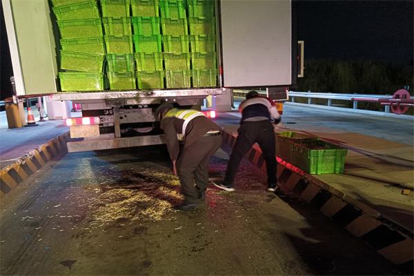 2021年4月1日晚7:36分左右,一輛車牌號為魯UT9956的綠通車輛駛入廟鎮收費站,司機要求免費,在查驗綠通時,司機剛打開車后門,有兩筐豆芽掉了下來。當班驗貨員和文龍在詢問司機并沒有受傷后,按規定迅速驗貨拍照后,幫助司機把灑在外面的豆芽裝回筐里,幫助司機放回車里后才離去。