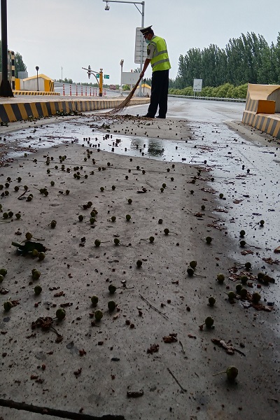 清掃車道散落垃圾,為司乘提供干凈整潔的通行環(huán)境