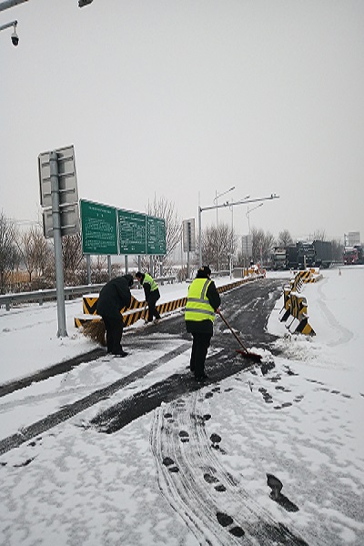 在班長(zhǎng)魏向謙的帶領(lǐng)下,青蘭收費(fèi)站收費(fèi)A班積極開(kāi)展除雪活動(dòng)。雪鏟,鐵鍬,掃帚,大家齊心協(xié)力,相互配合,將車道內(nèi)的積雪清理干凈。