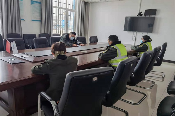 會上,班長魏向謙向大家傳達了公司當日印發(fā)的《關于進一步嚴明疫情防控紀律作風的通知》。