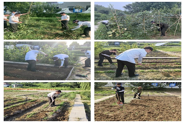 在劃分好菜地后,大家拿起工具進(jìn)入自己的專屬區(qū)域,有的除草,有的翻地,有的施肥,勞動(dòng)現(xiàn)場熱鬧非凡。在大家的共同努力和辛勤勞作下,將一塊塊菜地清理干凈,種植多種蔬菜。