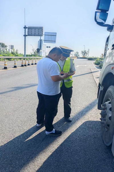 廟鎮收費站工作人員向過往司乘推廣冀交萬里行會員