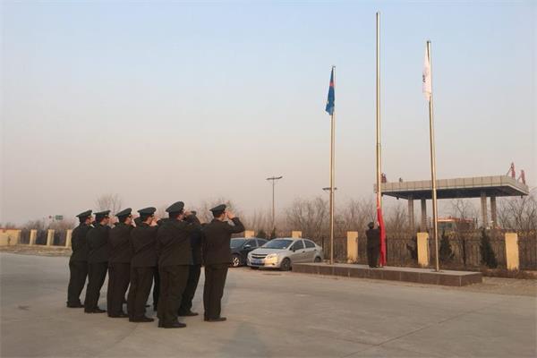 2019年1月1日,值班站長房磊組織站內(nèi)職工舉行迎新年升旗儀式。朝陽似火驅(qū)趕了冬夜的寒意,國旗是光,引領(lǐng)著前進的方向。在莊嚴的國歌聲中緩緩升起的五星紅旗,寓意祖國騰飛地越來越高;飄揚的集團公司旗幟,象征著集團公司發(fā)展的越來越好?;厥?span lang="EN-US" style="font-size:16px;">2018感慨萬千,展望2019精彩無限。新年伊始重新開始,用行動來賦予衡德精神新的內(nèi)涵。