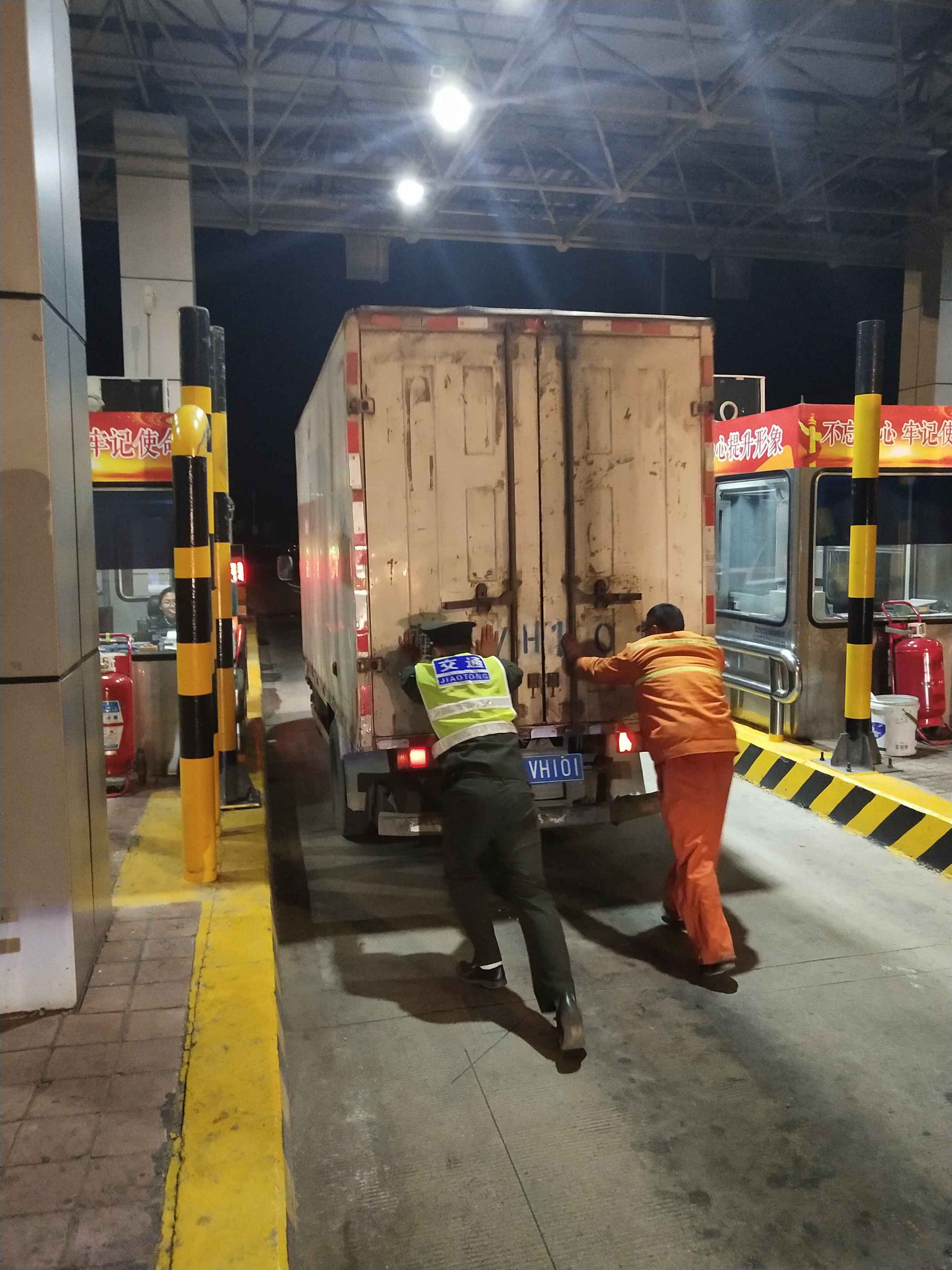 五一節假日免費通行的第一天,行駛到龍華收費站廣場的貨車司機師傅的車突然熄火。眼看就要到家的司機師傅眉頭緊鎖慌忙下車檢查,這天正值五一免費放行第一天,車流量很大,并且夜色昏暗,司機師傅自己一人站在車下很是危險。收費C班疏導員彭琳在發現情況后第一時間上前詢問情況,通知值班站長給道路救援打了電話前來處理,并一同幫助司機師傅將車推出車道,確保道路暢通,保證安全通行。