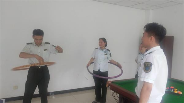 收費A班轉圈高手夏澤源為大家帶來呼啦圈花樣轉法表演,時而大擺腰,時而顫動手臂,變動各種姿勢,大家看的投入,不斷發出陣陣掌聲,表演完畢夏澤源又傳授大家轉圈技巧,你試試他試試,在一陣陣歡聲笑語中結束了此次活動。