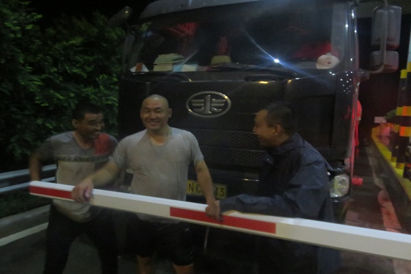 8月1日下午七時許,狂風毫無征兆的刮了起來,并夾雜著稀疏的雨滴,打在崗亭上“啪啪”作響。這時一輛車牌號為魯N的六軸貨車停在了青蘭站收費外廣場的公告牌處。隨后下來兩名司機給貨物蓋篷布。由于風力較大,蓋好的篷布幾次被掀起。此時雨越下越大,班長尚澤立即穿上雨衣,雨靴前去幫助。由于風力較大,加之雨越下越急。尚班長讓司機先將車開到收費頂棚下面。班組幾人也上前幫忙。人多力量大,經過十多分鐘的努力,終于將篷布蓋好了。