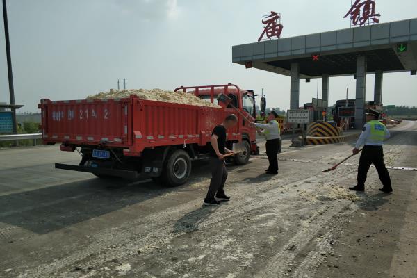 2019年5月28日下午兩點多鐘,正是一天當中氣溫最高的時候,氣溫達到三十六七度,廟鎮收費站陽光班組的班長李健和疏導員李飛負責著今天的外勤工作。就在這時,入口駛來一輛滿載貨物的紅色貨車,在經過減速帶的時候,由于車輛車速太快,造成車門插銷焊接處斷裂。減速帶附近散落了大片的豆腐渣,嚴重影響了車輛的正常通行,情況十分危機,班長李健和疏導員李飛,立刻上前查看情況,并對后方來車進行疏導。班長立刻組織人員清理散落在路面的豆腐渣,及時保障了廟鎮收費站口的暢通。