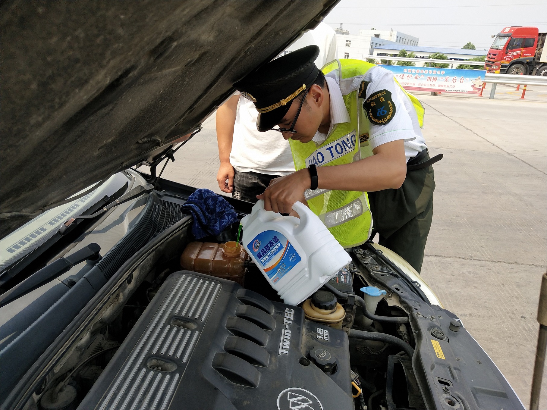 疏導員楊昭在進行疏導作業時,發現一輛車停靠在收費廣場邊上,細心地楊昭趕忙前去詢問,原來是車壞了被迫停了下來,進行檢查后是因為防凍液的減少導致散熱系統出現問題,致使車拋錨。