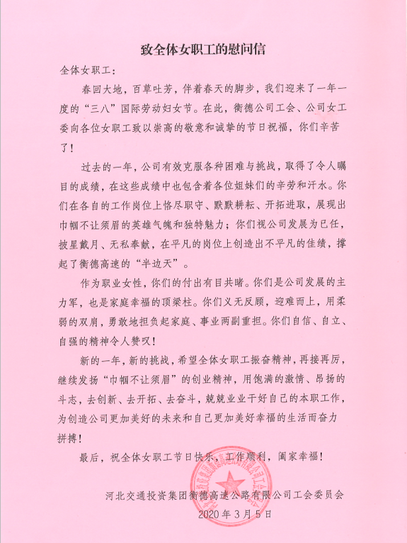 致全體女職工的慰問信