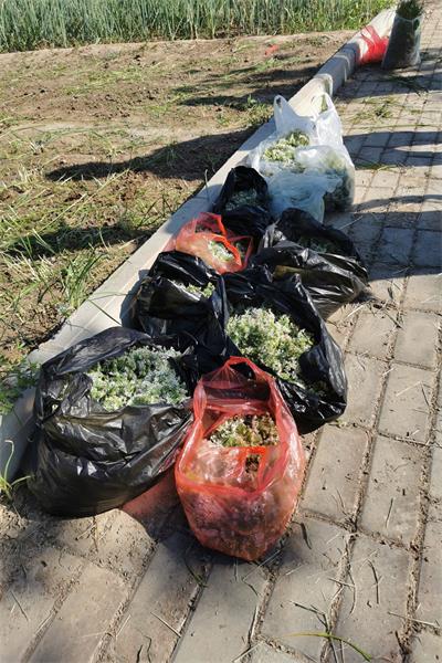 來到公司后院的韭菜花地,放眼望去,韭菜花爭(zhēng)相盛開,散發(fā)著濃郁的清香。在紀(jì)檢書記郭志戰(zhàn)同志及兩名支部書記的帶領(lǐng)下,兩個(gè)支部的黨員、群眾展開了勞動(dòng)。大家分工協(xié)作,女同志采摘韭菜花;男同志割除雜草和已老的韭菜。下午三點(diǎn)的太陽(yáng)依舊像一個(gè)大火球炙烤著,大伙干的熱火朝天,汗流浹背。經(jīng)過1個(gè)多小時(shí)的采摘、清理,收獲了近十幾斤的韭菜花,韭菜、雜草清除干凈,菜地變得整潔、有序,八月十五前又可以吃到兩茬新鮮的韭菜了!最后,大家把采摘的韭菜花送到公司食堂,既豐富了食堂菜品,也做到了“顆粒歸倉(cāng)”。