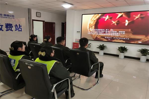 2020年11月30日至12月6日為國家憲法宣傳周,衡德公司開展多種形式組織宣傳學習憲法活動。除在各收費站、工區通過LED屏循環播放宣傳憲法公益廣告、微視頻和標語外,還組織機關各部室、所屬各單位學習《中華人民共和國憲法》等文件和資料,觀看憲法宣傳視頻,開展憲法知識答題活動。