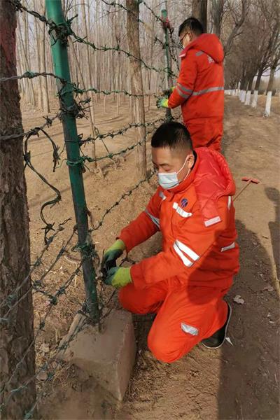 在做好疫情防控工作的同時,衡德公司聯合高速路政部門集中力量,重點對過村路段、隔離柵反復被破壞位置進行排查整治,共出動巡查車6輛、養護工作人員及路政執法人員19人,排查發現刺網損壞6處,及時對破損位置進行了修復,同時在破損位置附近張貼安全警示告示、安裝警示標牌。對邊坡邊溝內放牧、逗留人員,立即進行勸離,并耐心講解橫穿高速公路、在公路范圍內放牧等行為的危害性和嚴重性。