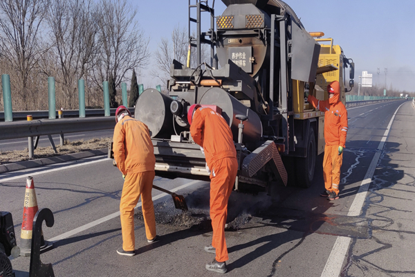 二是對路面、橋面坑槽進行修補。巡查人員在道路巡查過程中發現,部分路面出現坑槽,影響過往司乘行車安全,立即組織職工進行坑槽修補作業,施工過程中嚴格按照施工規范,做好安全防護,確保施工作業安全進行。