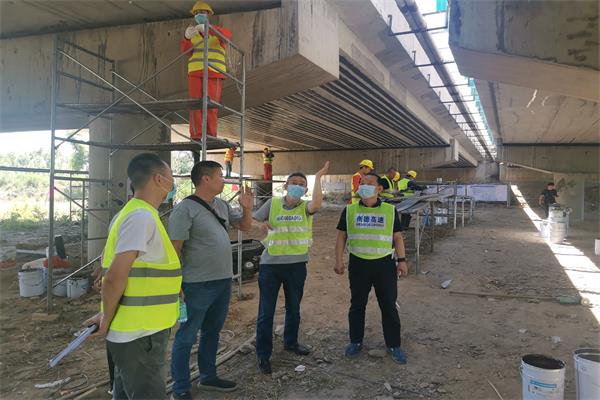施工單位負責人及監理單位負責人分別就工程開展情況做了簡要匯報,檢查組對現場施工安全、橋梁裂縫修復,碳纖維板粘貼等重要環節進行檢查。