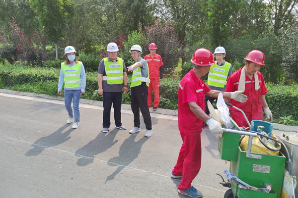 檢查組實地查看了標線施工現場安全設施布置、安全員配置及施工進度和工程質量,并詳細詢問了施工人員生活保障情況。