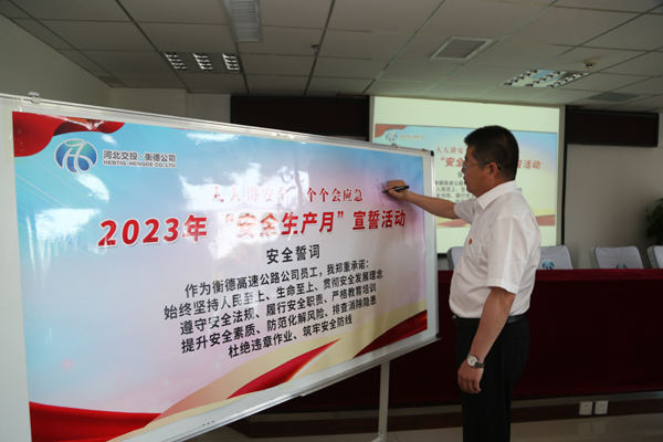 隨后,陳亮領讀安全誓詞,承諾貫徹安全發展理念,履行安全職責,提升安全素質,防范化解風險,排查消除隱患,筑牢安全防線。參會人員在宣誓詞上進行簽字承諾。