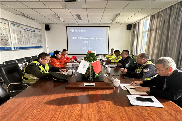 首先,衡德公司黨委委員、副總經理李振松會同路政、交警等各部門負責人召開了本次除雪演練的動員會,會上,青蘭養護工區主任首先將本次演練的內容、流程、分工進行了介紹。隨后,李振松同志重申了演練的注意事項,同時要求參演人員一定要用心參與演練,不能走過場、應付事,要把演練當實戰,保證成效。
