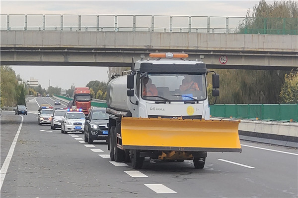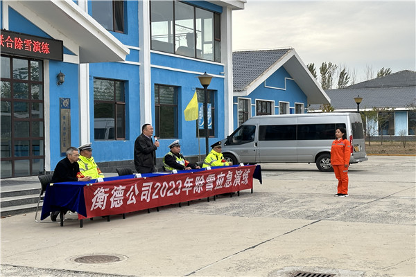 為全力推動2023年除雪保暢工作,深入貫徹齊樹平總經理在高速公路企業“大干80天”工作調度會議上的講話精神,同時落實衡德公司惡劣天氣保通保暢“路警企一體化”機制調度會的會議精神,持續鞏固和深化“路警企一體化”合作成果,不斷提高衡德高速各單位之間應對突發惡劣天氣的快速反應和協作能力,確保衡德高速公路安全暢通。11月16日,衡德公司聯合高速交警景縣大隊、故城交警大隊、衡水市交通運輸綜合行政執法支隊執法四大隊共同開展了除雪應急演練。衡德公司黨委委員、副總經理李振松任本次演練的總指揮。