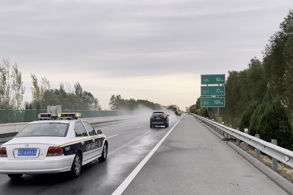 下午15時,全體參演人員在青蘭養護工區院內集合,總指揮李振松同志做演練前動員致辭。“除雪應急演練開始!”隨著總指揮的一聲令下,各單位人員隨即進入指定位置,按規定程序開始演練。本次演練模擬衡德高速公路故城支線下行K21公里處至南江江服務區發生雪情。交警、路政部門對現場交通進行安全預警,養護工區對“降雪”區域進行除雪作業。演練開始后,參演人員按演練流程各就各位,全部車輛按既定順序,前往現場,青蘭收費站負責搶險車隊在收費站口快速通行,到達K21公里處青蘭養護工區開始撒布融雪劑,撒布過程中交警、路政車輛對作業現場進行安全預警,保證作業安全。作業完成后,全部車輛有序返回工區。整個演練過程,各部門參演人員反應迅速、分工明確、各司其職、配合默契、緊張有序的完成了任務。