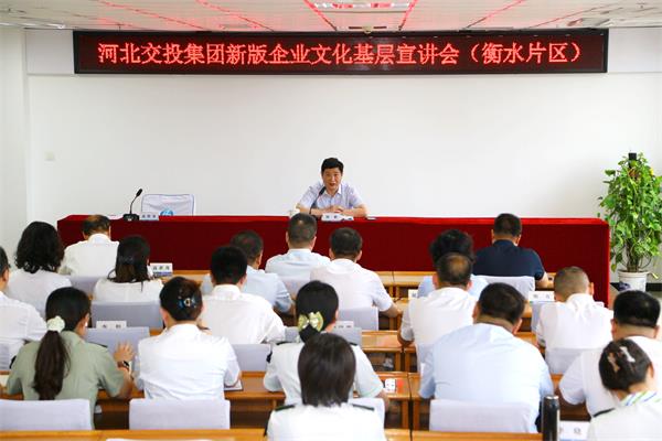 近日,河北交投集團新版企業文化基層宣講會(衡水片區)在衡德公司總部舉辦,河北交投集團黨委辦公室(黨委宣傳部)副主任劉彬出席并作宣講,衡德公司班子成員、中層干部、文化骨干以及衡德高速建設發展有限公司有關同志參加會議。