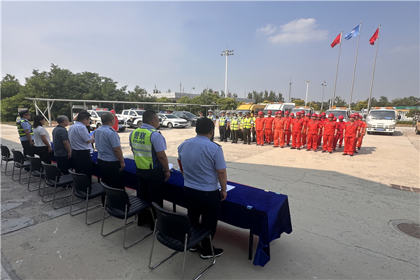 15時,參演人員以及車輛設備已在衡德公司青蘭養護工區院內集合完畢。各參演單位領導來到主席臺,總指揮陳亮發表了演練前致辭,他強調,此次演練是對衡德高速公路公司防汛應急處置能力的一次實戰檢驗。希望全體參演人員以飽滿的精神狀態和嚴謹的工作態度,確保演練取得圓滿成功。隨后,陳亮同志下達了演練開始命令,防汛演練正式拉開序幕。